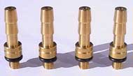 Apply a high temperature thread locking sealant, something like Loctite, onto the threads and screw into inlets. (If you push spigot end of the brass adapter fully into the fuel hose this will make it easier to screw in adapter.)